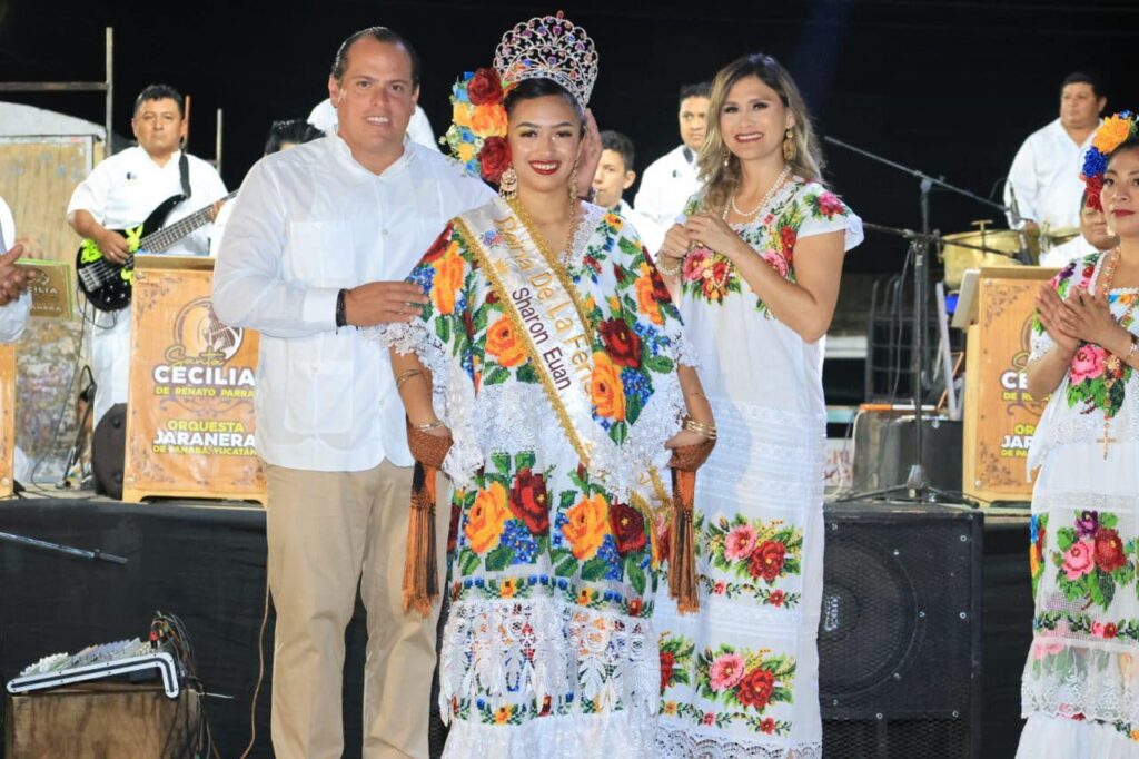 Acto seguido, el alcalde y su esposa colocaron la corona a Sharon Isabel Euán Santis, reina electa de estos festejos, quien dijo que llevará con orgullo esta corona y pondrá en alto las tradiciones de su pueblo.