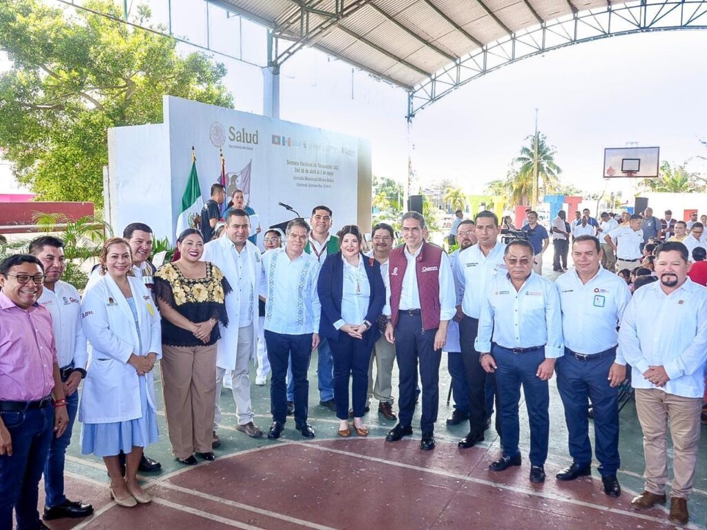 Al encabezar esta jornada, el secretario de Salud, Flavio Carlos Rosado, en representación de la gobernadora de Quintana Roo Mara Lezama, hizo un llamado a madres, padres y cuidadores a llevar a sus hijas e hijos a vacunar y completar sus esquemas de vacunación.