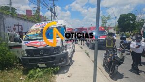 Cancún. – Cinco lesionados y daños de consideración fue lo que dejó un choque entre una combi de servicio público y una camioneta sobre la avenida José López Portillo.