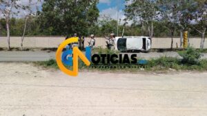 Los hechos fueron la mañana de este lunes cuando el conductor circulaba con dirección a Cancún y al pasar la entrada de la base militar perdió el control de su unidad.