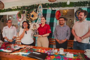 La Presidenta también reconoció a doña Leonor Castañeda Martínez, presidenta de la Asociación, por su liderazgo y trayectoria en la promoción de la actividad artesanal en Playa del Carmen, y celebró el papel de las mujeres que han abierto camino en la economía local.