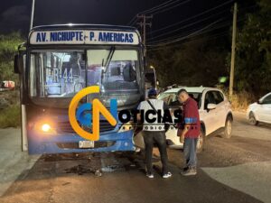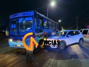 Al parecer la presunta responsable estaba distraída al momento de ingresar a un carril preferencial con su camioneta honda cuando colisionó al camión marcado con el 552 de la ruta 44, quedando atravesado en la transitada vialidad.
