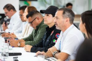 Acompañada por el secretario de Desarrollo Económico de Quintana Roo, Paúl Carrillo, la Alcaldesa destacó la necesidad de la coordinación efectiva con el sector empresarial para proteger a la población en momentos críticos.