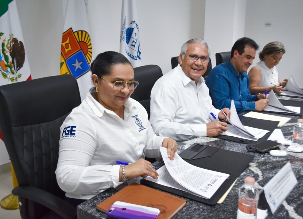 Firmaron dicho convenio el Fiscal General, además de Miguel Cheluja Martínez, Auditor Superior del Estado de Quintana Roo; Reyna Valdivia Arceo Rosado, Secretaria de Anticorrupción y Buen Gobierno del Estado de Quintana Roo y Teresita del Rocío Quivén Feria, Titular del Órgano Interno de Control de la Fiscalía General del Estado.