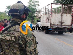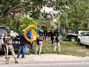 Cancún.- Dos personas fueron rescatadas durante un fuerte despliegue policial en un rancho ubicado sobre la carretera federal Cancún- leona vicario, al parecer sujetos armados huyeron al monte.