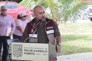 En la localidad Emiliano Zapata, municipio de Felipe Carrillo Puerto y en representación de Quintana Roo, el secretario de Desarrollo Agropecuario, Rural y Pesca (SEDARPE), Jorge Aguilar Osorio, reconoció el esfuerzo del Gobierno de México, encabezado por la presidenta Claudia Sheinbaum, y la importancia de sumar esfuerzos entre los tres órdenes de gobierno,