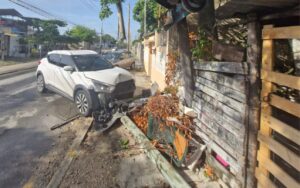 El Nissan Kicks, por su parte, continuó su trayectoria hasta impactarse contra un poste de madera, mismo que fue derribado por el impacto, ahí terminó su loca carrera.