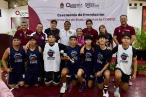 Además, en el marco de esta entrega de trofeos y medallas para reconocer el esfuerzo de las y los jóvenes basquetbolistas, se realizó la Firma del Nuevo Acuerdo por el Bienestar y Desarrollo de Quintana Roo para promover el deporte en el Gimnasio “Nohoch Suku’n” y para su cuidado, como parte de las acciones que impulsa la gobernadora Mara Lezama Espinosa.