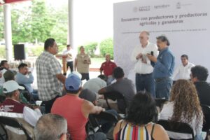 En un encuentro con productoras y productores de agricultura, ganadería y pesca, el titular de la SADER nacional escuchó propuestas y peticiones, y expresó que dará puntual seguimiento a cada una de ellas.
