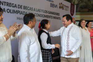 En ese sentido, el Gobernador añadió que esta beca es un impulso y una promesa de que Yucatán y México creen en su niñez y juventud, y explicó que, a través del programa Becas BBVA para Chavos que Inspiran, también podrán recibir acompañamiento para continuar con éxito su bachillerato y universidad.