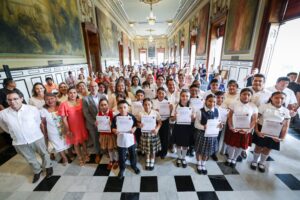 El Gobierno del Renacimiento Maya reconoció a 14 estudiantes de sexto grado de primaria de Yucatán, ganadores de la Olimpiada del Conocimiento Infantil 2025, por su destacado desempeño académico.