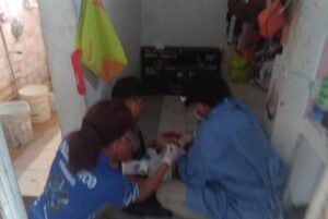 Cancún.- Paramédicos de una empresa particular reciben a un nuevo cancunense en una vivienda de la supermanzana 68
