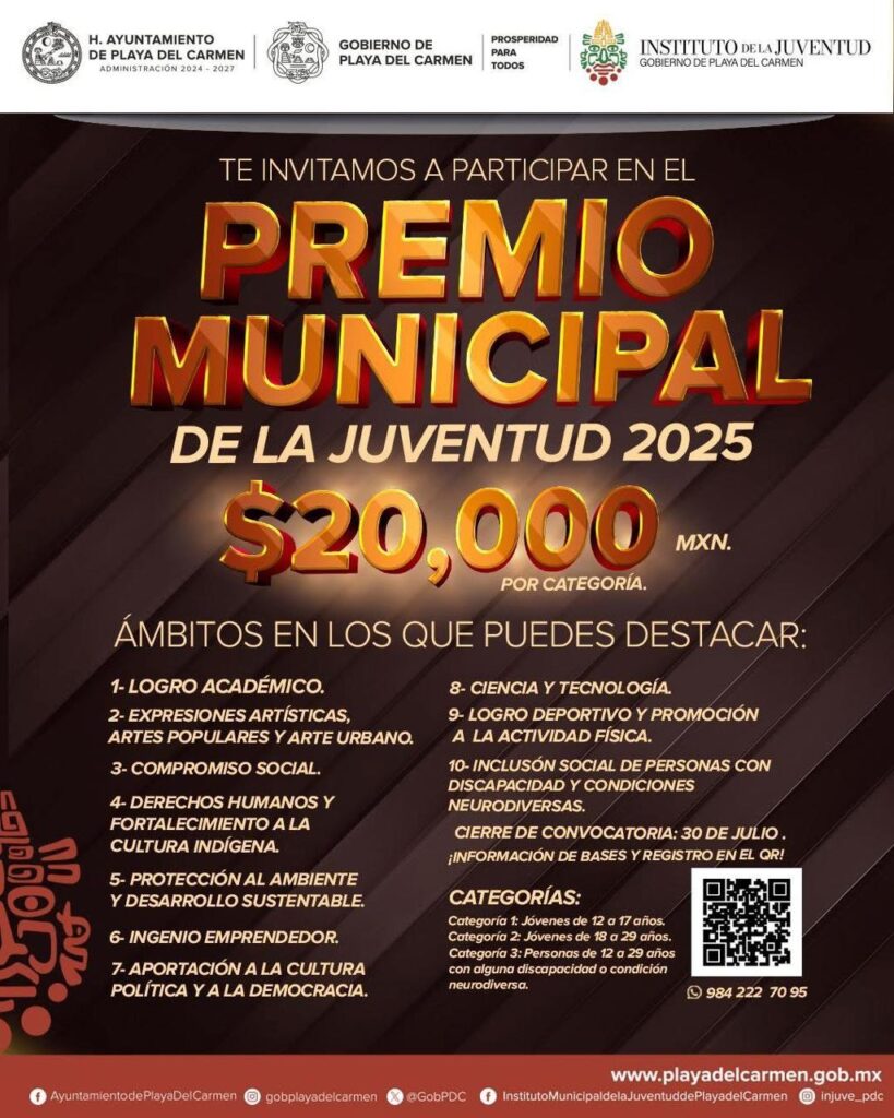 Lanzan convocatoria al Premio Municipal de la Juventud 2025 en Playa del Carmen