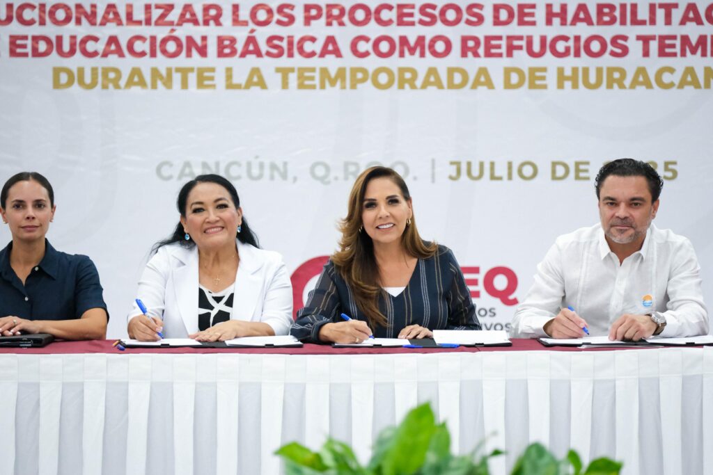 Mara Lezama firma convenio con hoteleros para habilitar 42 escuelas como refugios temporales y proteger a turistas y trabajadores ante ciclones