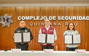 Cancún.– Como parte del Nuevo Acuerdo por el Bienestar y Desarrollo de Quintana Roo, que impulsa la gobernadora Mara Lezama Espinosa, este día se firmó el acuerdo “Salud en la línea de frente”, una alianza estratégica entre la Secretaría de Salud del estado, la Secretaría de Seguridad Ciudadana y el Colegio de Psicólogos de Quintana Roo.