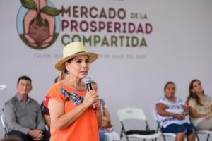 Tulum.- Para darle a los productores de la zona Maya un espacio idóneo en el que puedan exhibir y comercializar sus cosechas, artesanías y otros artículos, la gobernadora Mara Lezama Espinosa participó en la apertura del Mercado de la Prosperidad Compartida, en el domo del parque “Dos Aguas”, en Tulum, un esfuerzo conjunto de tres municipios, José María Morelos, Bacalar y Tulum.