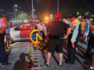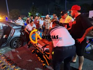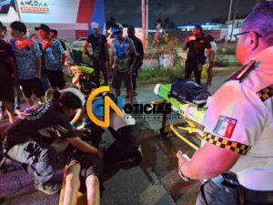 Cancún .- La noche de ayer, paramédicos de una empresa privada atendieron a dos mujeres que resultaron lesionadas tras un choque entre un vehículo y una motocicleta en el cruce con la avenida Prolongación Tulum y 30 de Noviembre.
