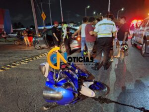 Según testigos, el accidente ocurrió cuando un vehículo que circulaba en sentido contrario embistió la motocicleta Yamaha azul tipo pista.
