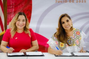 “Lo que hoy firmamos con la Cámara de Comercio México-Americana de Florida es un paso firme dentro del Nuevo Acuerdo por el Bienestar y Desarrollo de Quintana Roo, un nuevo pacto social que se firma en la vida cotidiana de la gente, en los nuevos mercados comerciales que se abren, en los productos que cruzan fronteras, en las inversiones que transforman comunidades para llevarles prosperidad compartida” expresó Mara Lezama acompañada de la CEO Alma Aguilar.