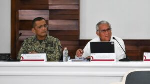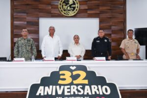 En la conferencia estuvieron presentes además, Cristina Torres Gómez, Secretaria de Gobierno; Contralmirante Julio César Gómez Torres, Secretario de Seguridad Ciudadana; Coronel de Infantería Diplomado de Estado Mayor Jaime Contreras Limón, Comandante del 64 Batallón y Contralmirante José Alberto Rodríguez Cuevas, Comandante del Sector Naval de Cozumel.