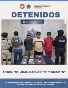 Cancún, Q. Roo, 30 de julio de 2025. — El reforzamiento de los operativos de seguridad en Cancún continúa arrojando resultados contundentes contra el narcomenudeo. En una acción coordinada entre fuerzas de los tres órdenes de gobierno, tres presuntos distribuidores de drogas fueron detenidos en la Supermanzana 211, como parte del operativo permanente Blindaje Cancún.