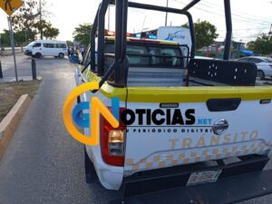 Cancún.-Un accidente entre una motocicleta y una combi se registró esta mañana en la Región 238, justo en el cruce de las avenidas 20 de noviembre y Tulum.