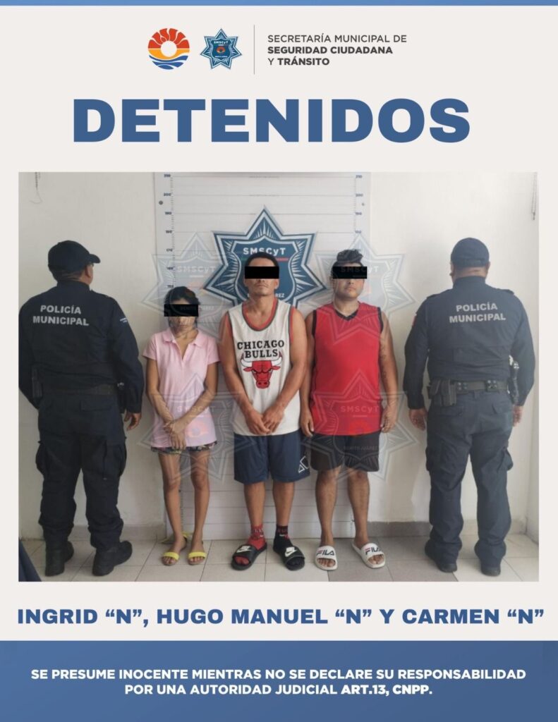 Cancún, Q. Roo., a 12 de agosto de 2025.– Elementos de la Secretaría Municipal de Seguridad Ciudadana y Tránsito (SMSCyT) de Benito Juárez detuvieron a tres personas, dos hombres y una mujer, presuntos implicados en el delito de quebrantamiento de sellos. Los hechos ocurrieron en las inmediaciones de la Región 90, cuando los oficiales […]