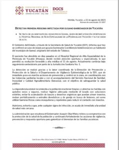 La administración que encabeza el Gobernador Joaquín Díaz Mena reitera su compromiso con la protección de la salud de la población y continuará fortaleciendo las acciones de vigilancia, prevención y respuesta oportuna para garantizar el bienestar de las familias yucatecas.