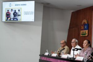 En la conferencia estuvieron también Cristina Torres Gómez, Secretaria de Gobierno; Contralmirante Julio César Gómez Torres, Secretario de Seguridad Ciudadana; General Brigadier Diplomado de Estado Mayor Armando Toscano Yáñez, Comandante de la Guarnición Militar de Cozumel y Almirante Guadalupe Juan José Bernal Méndez, Comandante de la 5ta. Región Naval.