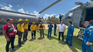 La única manera de llegar al incendio es por aire y tierra, por ello, Nivardo Mena, en helicópteros de la Marina, sobrevoló la zona y anunció que no escatimara esfuerzos para sofocar el voraz incendio con la contratación de más personal para trabajar en brechas cortafuegos así como la maquinaria necesaria como motosierras y machetes.