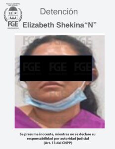 Tras investigar los hechos, la Fiscalía solicitó y obtuvo de un Juez de Control la orden de aprehensión en contra de Elizabeth Shekina “N”, misma que fue cumplimentada, para presentarla ante la autoridad que la requirió; en el periodo constitucional previsto definirán su situación jurídica.