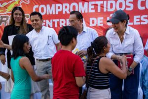 En el marco de la entrega de 32 mil 400 paquetes de útiles escolares para hijos de trabajadores croquistas en todos los niveles educativos, donde también estuvo Martín de la Cruz, dirigente estatal de la organización, la alcaldesa dirigió un emotivo mensaje a niñas, niños y jóvenes: