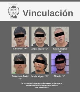 Los vinculados Alexander “N”, Francisco Javier “N”, Jesús Miguel “N”, Kevin Alberto “N” y Ángel Mateo “N”, quedaron bajo la media cautelar de prisión preventiva justificada, por el tiempo que dure el proceso judicial.