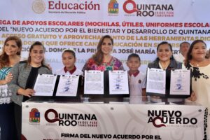 En el marco de este evento se llevó a cabo la firma del Nuevo Acuerdo por el Bienestar y Desarrollo de Quintana Roo para el acceso gratuito y aprovechamiento de las herramientas digitales innovadoras que ofrece Canva Educación en su versión Pro, contribuyendo a disminuir la brecha digital, brindar nuevas oportunidades de aprendizaje y preparar a estudiantes, docentes y personal administrativo de educación básica y media superior del estado.