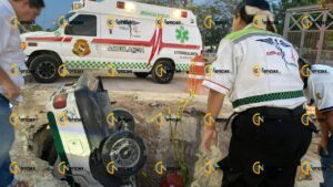 Cancún.- Un taxista terminó su viaje con un buen susto al enviar su vehículo en una gran zanja, cuando al parecer se durmió al volante sobre la avenida Puerto Juárez, a la altura de la región 102.