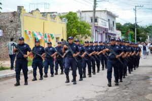 Luego del recorrido de los contingentes en el desfile cívico militar, se realizó el homenaje a cargo de la escolta y banda de guerra de la Dirección de Seguridad Ciudadana así como las escoltas de todos los planteles educativos participantes y cientos de personas que se sumaron a esta actividad, resaltando el fervor patrio.