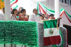Ante miles de personas que abarrotaron la explanada del palacio municipal, acompañado de su esposa Marisol Escalante Jiménez, la reyna de las fiestas patrias Odette Poot Chimal entre otras personalidades, Nivardo Mena dio el tradicional grito de independencia seguido del unisono de los habitantes para darle mayor realce a este importante evento.