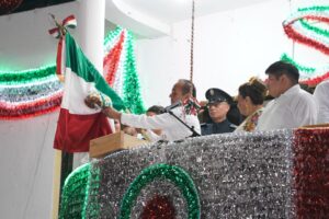 Kantunilkín. 16 de septiembre del 2025. Emulando al cura Don Miguel Hidalgo y Costilla, el presidente municipal Nivardo Mena dio el tradicional grito de Independencia conmemorando el 215 aniversario.