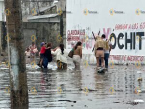 En un video se pudo ver que un camión de basura de la empresa red ambiental pasa a toda prisa y son importar que el agua entra a las casas mientras que un grupo de ciudadanos limpian las alcantarillas