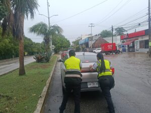 Cancún, Q. Roo a 17 de septiembre del 2025.- Debido a las precipitaciones ocasionadas por la Onda Tropical Núm. 33, la Secretaría Municipal de Seguridad Ciudadana, a través de la Dirección de Tránsito, mantiene recorridos de prevención y vigilancia para detectar puntos de encharcamiento y brindar apoyo vial a la ciudadanía que así lo requiera.