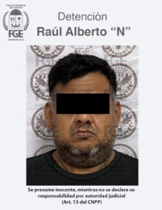 El detenido es identificado como Raúl Alberto “N”, quien tras los hechos por los que es investigado, huyó a la ciudad de Mérida, donde fue detenido en colaboración con la Fiscalía General del Estado de Yucatán