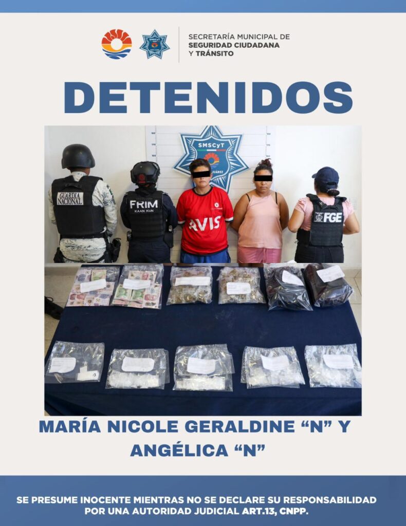Cancún, Q. Roo., a 27 de septiembre de 2025.– En una acción coordinada entre la Guardia Nacional, la Fiscalía General del Estado (FGE) y la Secretaría Municipal de Seguridad Ciudadana y Tránsito (SMSCyT) de Benito Juárez, se logró la detención de dos mujeres por su presunta implicación en delitos contra la salud, en la modalidad […]