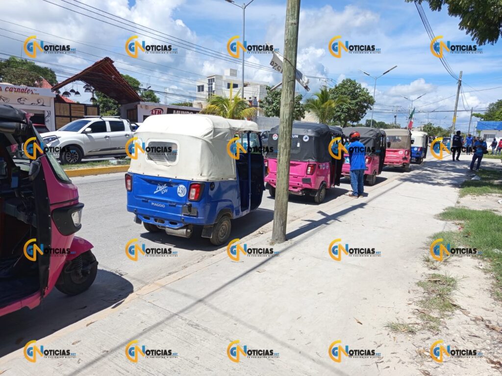 Unos 80 operadoras de Mototaxista del sindicato IslaCun impidieron que oficiales de Tránsito de Isla Mujeres le quitarán su unidad a uno de sus compañeros