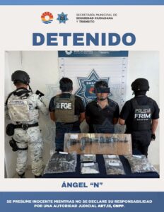 Cancún, Q. Roo., 29 de septiembre de 2025. – En una acción coordinada entre la Guardia Nacional, la Fiscalía General del Estado (FGE) y la Secretaría Municipal de Seguridad Ciudadana y Tránsito (SMSCyT) de Benito Juárez, fue detenido un hombre por su presunta participación en delitos contra la salud, en la modalidad de narcomenudeo, así como por portación de arma de fuego de uso exclusivo.