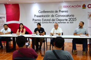 Chetumal.- Con el objetivo de reconocer a lo más destacado en el ámbito deportivo del estado, la Comisión del Deporte de Quintana Roo (CODEQ), a través de su presidente Jacobo Arzate Hop, presentó la convocatoria para la elección del “Premio Estatal del Deporte 2025” y el “Premio a la Excelencia Deportiva 2025”, reconocimientos que serán entregados por la gobernadora Mara Lezama Espinosa, el próximo 20 de noviembre en el marco del Aniversario de la Revolución Mexicana.