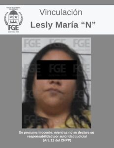 • La Fiscalía General del Estado informa que la ahora vinculada es identificada como Lesly María “N”