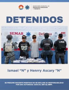 Por estos hechos, Ismael “N”, de 22 años de edad, y Henrry Ascary “N”, de 27 años, fueron detenidos y puestos a disposición de la Fiscalía General del Estado para las diligencias legales correspondientes.