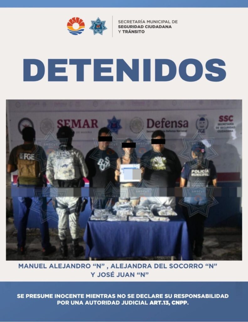 Cancún, Q. Roo., 20 de octubre de 2025. – En una acción coordinada entre la Fiscalía General del Estado (FGE) y autoridades federales, la Secretaría Municipal de Seguridad Ciudadana y Tránsito (SMSCyT) de Benito Juárez logró la detención de dos hombres y una mujer por su probable participación en delitos contra la salud, en la […]