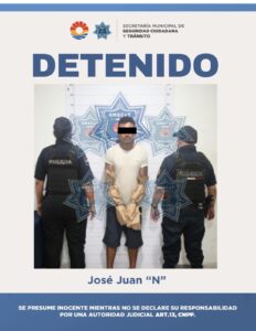 Por estos hechos, José Juan “N” fue detenido y puesto a disposición de las autoridades correspondientes para los trámites e investigaciones que marca la ley.