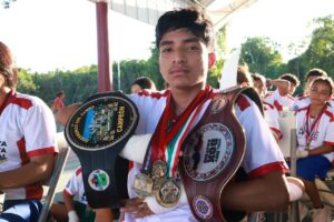 La entrega de uniformes nuevos a 134 alumnos de las disciplinas de Fútbol y Boxeo, se realizó en el Domo Hugo Ravell, donde previamente se realizó una exhibición de box.
